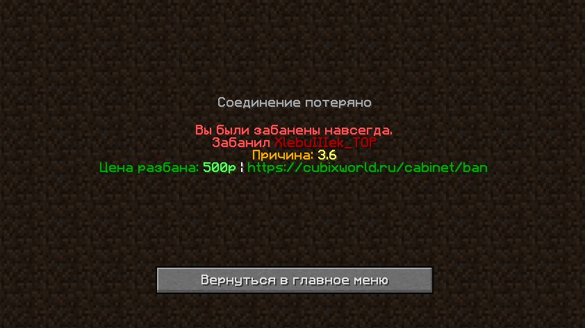 Меня забанил XlebuIIIek_TOP по причине 3.6 на сервере Hitech 2. Но я не имею больше 3 аккаунтов: у меня было 3 аккаунта, но один из них взломали, поэтому я больше не могу на нем играть, так как он уже не является моим. Поэтому завел новый аккаунт, не получив должной поддержки от техподдержки. Там мне написали "вы можете иметь сколько угодно аккаунтов, но играть не больше, чем на 3, иначе могут забанить". Так, я на сервер не заходил с 4 аккаунтов, только с 3. Аккаунт NightShadou был моим, но сейчас из-за взлома не мой, поэтому я создал NightShadou1. Я считаю, что не заслужил бан, так как не нарушил ничего (а с другой стороны, как играть, если аккаунт взломан ?)