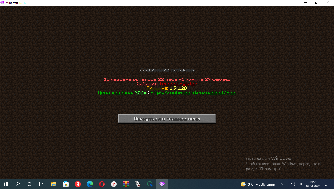 5.Скрнишот таблички бана (Можно взять с личного кабинета);