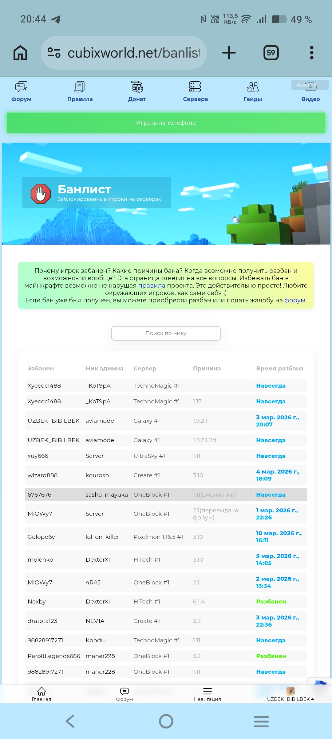 - Ваш никнейм, сервер:GALAXY UZBEK_BIBILBEK